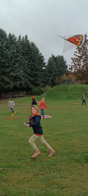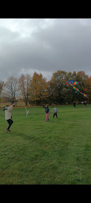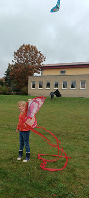 Kurz vor den Herbstferien ging es in der Grundschule bunt einher, denn alle Klassen hatten ihren Herbstprojekttag. Die 1. Klasse kochte fleißig Apfelmus, sodass herrlichste Düfte durch das Schulhaus zogen und die Klassen 2, 3 und 4 bastelten und werkelten in den Klassenräumen. Anschließend hatten wir unser Drachenfest geplant. Leider ließ der Wind an diesem Tag wirklich zu wünschen übrig, sodass die Drachen nicht so richtig zum Steigen kamen. Aber der Herbst ist noch lang und wenn sich der Wind etwas großzügiger zeigt, dann können die Kinder erneut ihr Talent und Teamworking beim Drachensteigen unter Beweis stellen. Um die Kinder trotzdem aktiv auf dem Sportplatz zu halten, beschlossen die Lehrer spontan, Staffelspiele bei fetziger Musik zu veranstalten. Alle hatten ganz viel Spaß dabei. Weiterhin haben alle Klassen in den letzten Wochen fleißig Kastanien für die Wildtiere gesammelt, welche vor den Herbstferien vom Jäger abgeholt werden. Ein Obolus für das fleißige Sammeln geht nach Absprache mit dem Schulförderverein dieses Jahr mal an alle Klassenkassen. Vielen Dank an die Kinder und Eltern für das fleißige Sammeln!