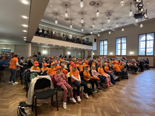 Gepäck. Ein besonderer Dank gilt dem Schulförderverein, der die Kosten für die Busfahrt übernommen hat und damit diesen Ausflug so spontan möglich machte. Auch die orangefarbenen Basecaps, die